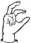 На ћирилици написано ЗОРАНА КЛЕМЕНОВИЋ састоји се из 16 слова [?]. Исписано ћириличном једноручном азбуком за глувонеме: